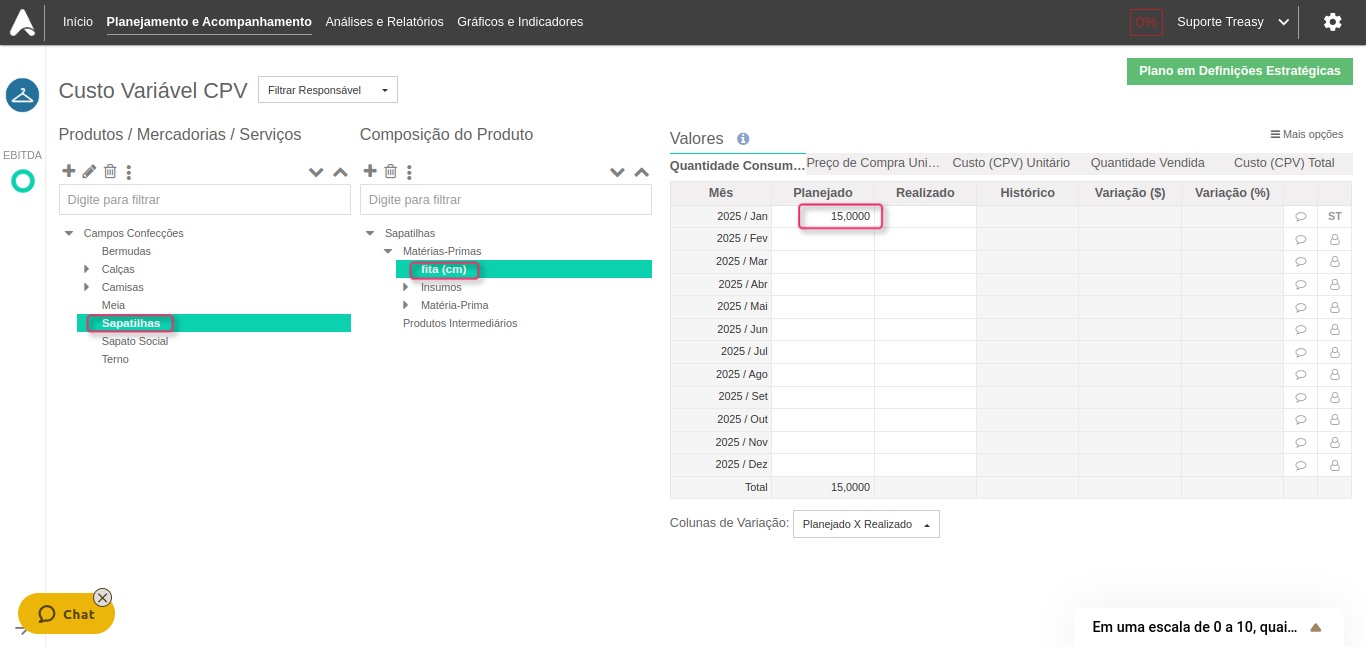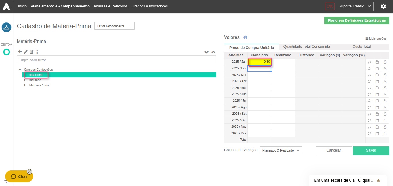 Em Matéria-Prima temos três campos para valores: